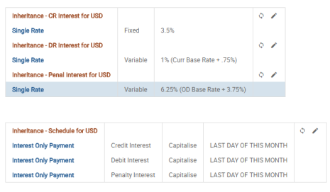 - With the above update, the user defines the USD Conditions for Credit Interest, Debit Interest, Penalty Interest and Schedule available for Inheritance.