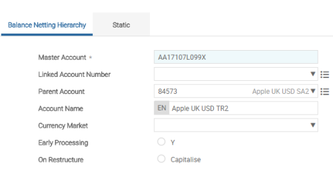 - Input the arrangement reference of the master account (Cash Pool Hierarchy).