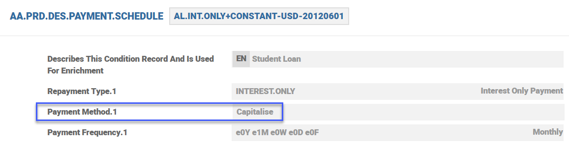 REPAY This action allocates the amount of interest to be repaid to the appropriate account balance. Depending on the PAYMENT.RULE applied the interest is made against billed or current amounts.
