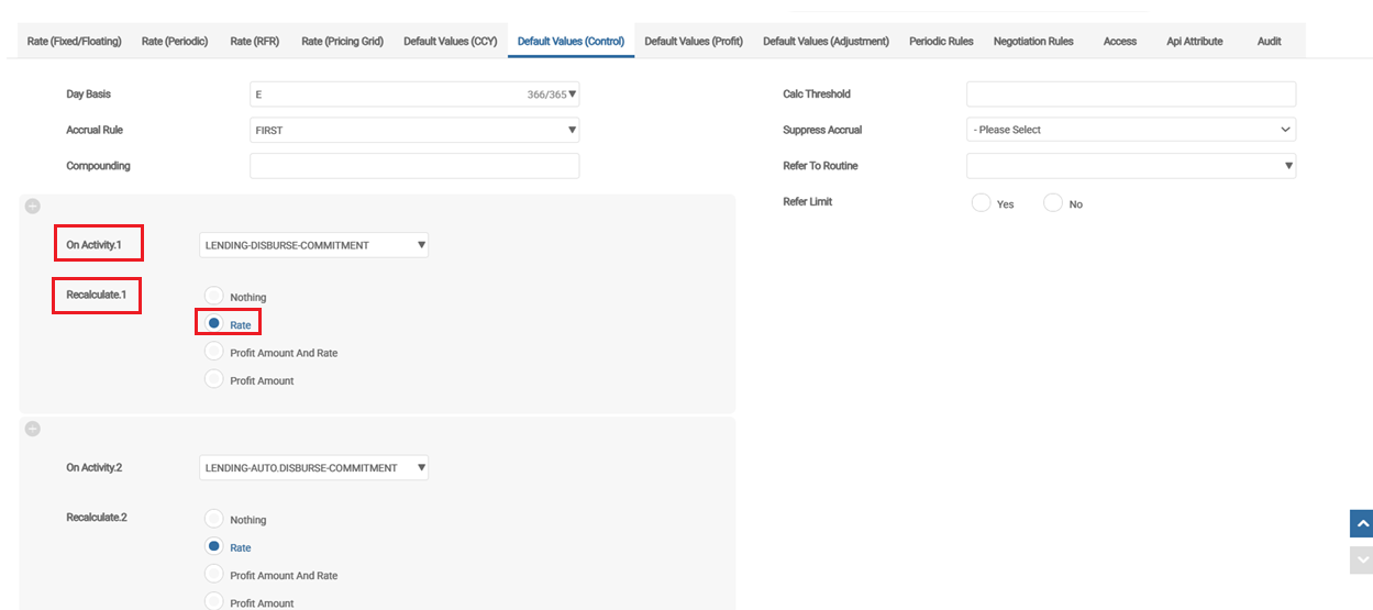 ADJUST.PERIODS To adjust the Interest applicable for the underlying product line.
