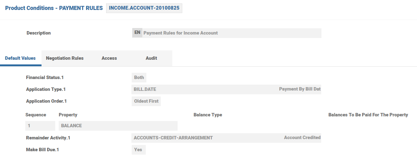 When a payment type with Alt Payment Method field set to Cap And Inv, is used in Payment Schedule Property Class, an invoice balance bill can be generated when capitalisation process tries to move the account to negative balance. The generated bill can be settled manually or automatically by configuring the Reconstruct Settlement field in AA.PARAMETER table.