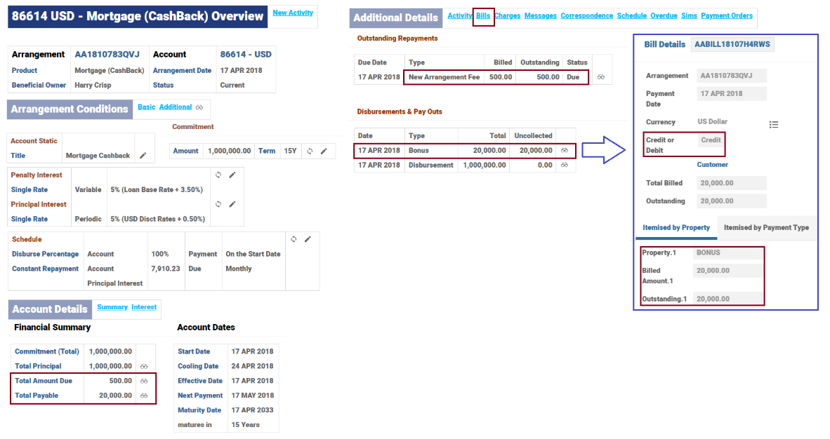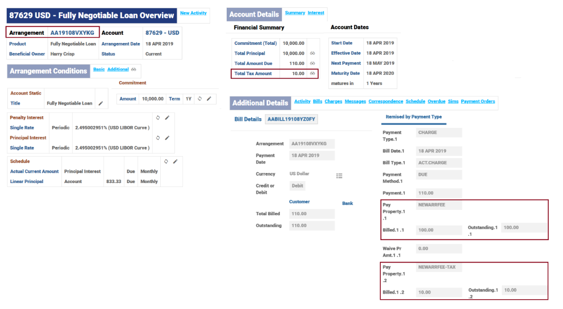 The below screenshot displays the New Arrangement Fee waived off because the arrangement has been created as a Valued Customer.