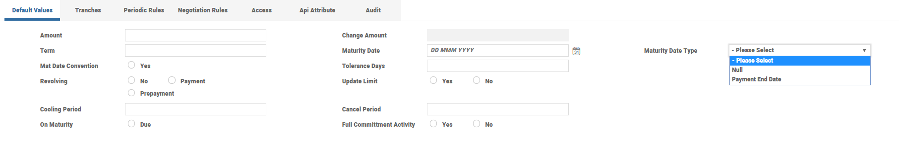 • The Commitment Drawdown attribute in the Term Amount Property class is used to define the disbursement method for the arrangement with options as Manual, Auto or Schedule.