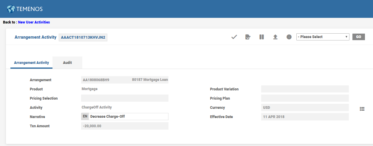This can be a partial Charge Off, a series of partial Charge Off transactions, or a total Charge Off. The loan may or may not be in non-accrual status when processing a partial Charge Off.