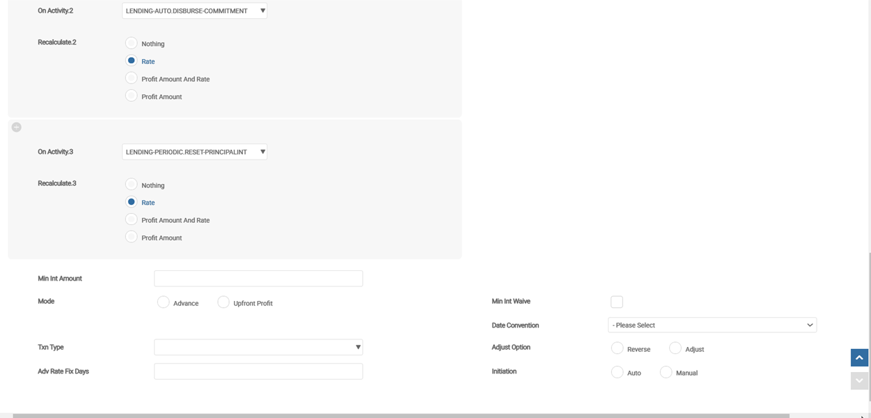 • Amort Recovery Suspend (applicable only for Lending Product Line)