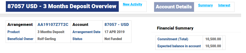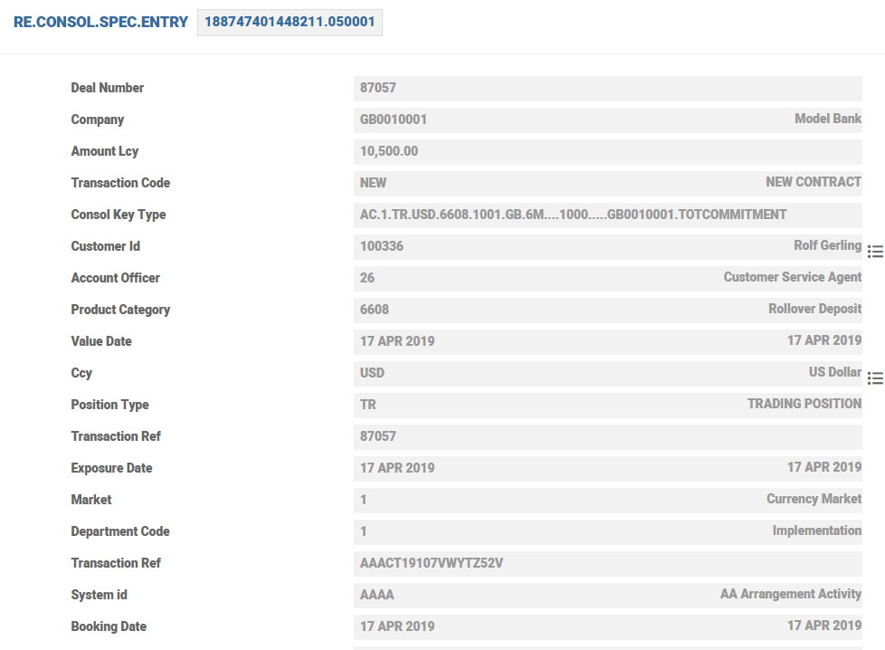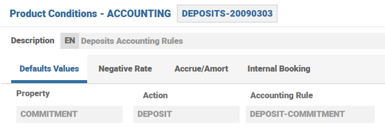 The soft accounting entries that gets generated for an arrangement is illustrated with the help of an example – funding of a deposit contract. The screen shots provided below reflect the set up details as explained in the above sections.