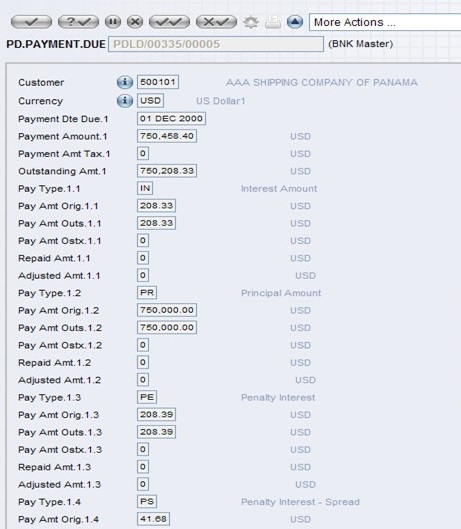 Past Due deals with the overdue payment, which is determined in the PD.PARAMETER application. The user can have a PD.PARAMETER record for each loan category, so PD processing can be different for various products. For example, the overdue processing cycle usually differs when dealing with an overdue Mortgage and an overdue Money Market trade. The PD module defaults to the company settings, where no record is defined for the category of product being processed.