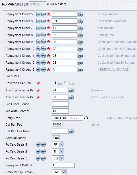 - Penalty interest is calculated at the underlying contract rate for an amount defined via Pen Calc Basis on PD.PARAMETER.