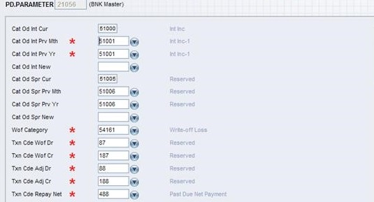 - PD deals with overdue payment and is determined by the settings on PD.PARAMETER. The bank can have a PD.PARAMETER record for each loan category, so PD processing can be different for various products.