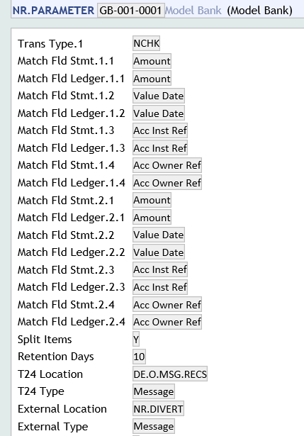 The NR.PARAMETER is the main application for the reconciliation process. User should setup the incoming and outgoing requirements before the user can input and authorise this record.