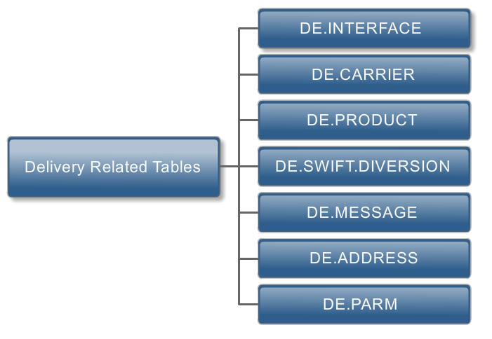 The DE.CARRIER contains names and address of bank’s customers and each company within the banking organisation. This table is used for entering all addresses like SWIFT address, TELEX address and special postal address. ID to be used for reconciliation is <COMPANYCODE>.<CUSTOMER NO>.<RECS.SLNO> (for example, US001001.C-100188.RECS.1) where RECS is ID in DE.CARRIER application.