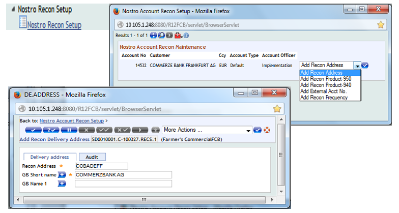 This application allows the user to define the name and address of the bank’s customer for reconciliation delivery carrier record. User can also define delivery addresses for other carriers like SWIFT, TELLEX and special postal address. |