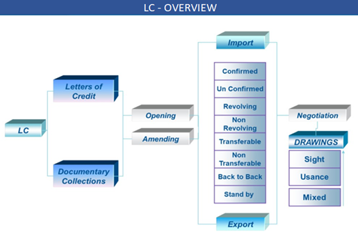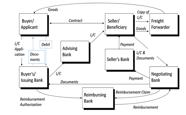 A Letter of Credit (LC) is a widely used instrument in international trade that meets the requirements of both the buyers and sellers. It is an undertaking by the issuing bank to the beneficiary of the credit, made on behalf of the applicant to pay irrevocably, on fulfillment of terms and conditions mentioned. Additionally, the banks play different roles (issuing, advising, confirming, negotiating and reimbursing bank) in the LC cycle to fulfill the LC conditions along with the parties mentioned in the credit.