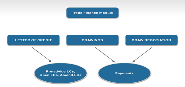 Trade finance module supports the recording and administration of LCs and documentary collections. It records the full details of the credit including amounts, dates, parties involved, charges, commission, margin and so on. Additionally, the trade finance module includes LETTER.OF.CREDIT, LC.AMENDMENTS, DRAWINGS and DRAW.NEGOTIATION that support the processing and management of both import and export LC cycle.