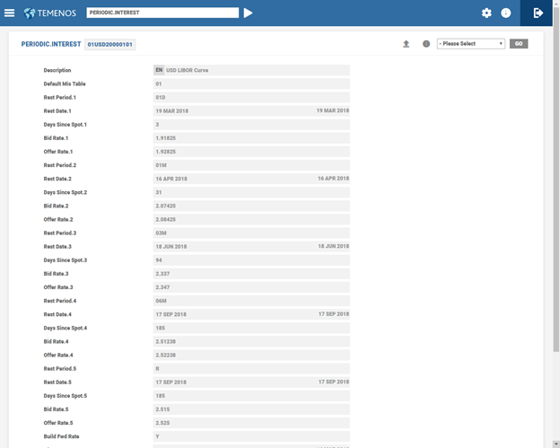 PERIODIC.INTEREST file is a core Temenos Transact file, which stores interest rates for several time periods (curve) or one period rate, such as 3M Libor or 6M Libor.