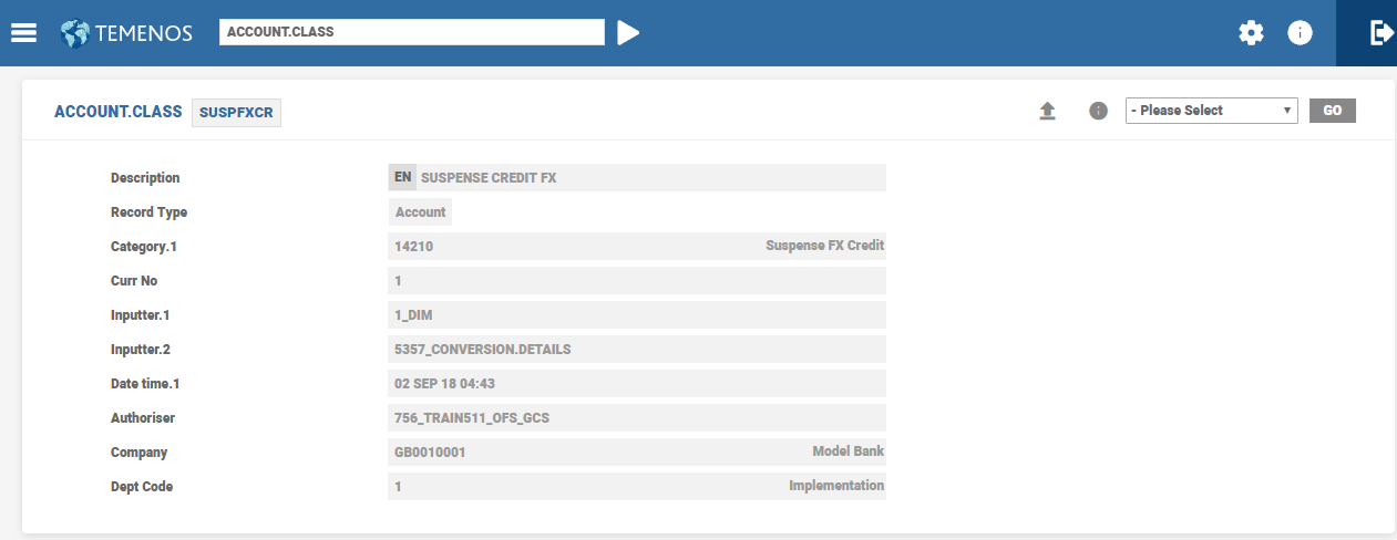 SUSPFXCR and SUSPFXDR are records of ACCOUNT.CLASS used in FRA module. A sample ACCOUNT.CLASS record is illustrated below:
