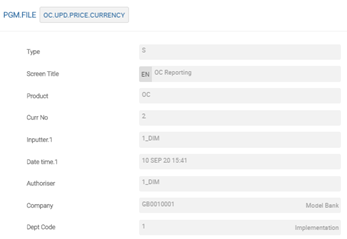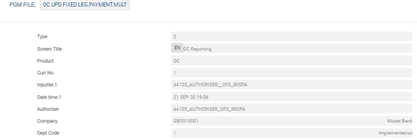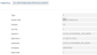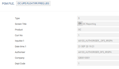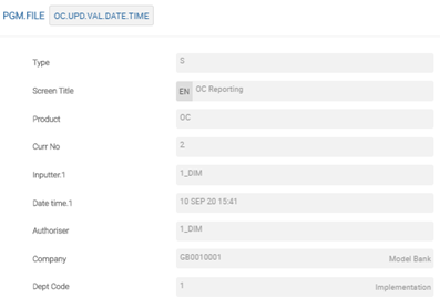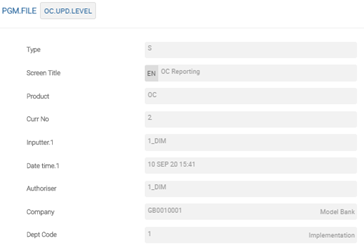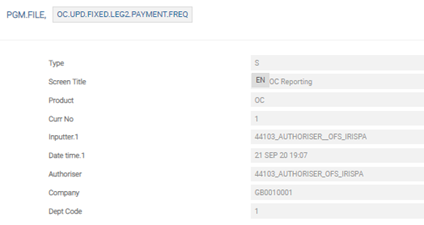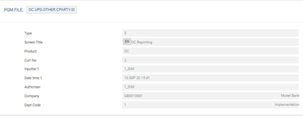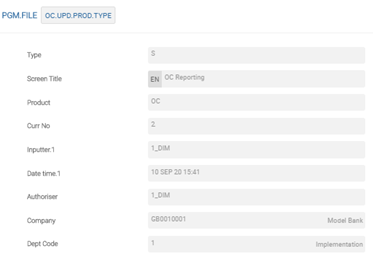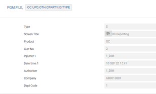 The user needs to configure the following records in PGM.FILE (Type as ‘S’ and Product as ‘OC’), which supports EMIR reporting: