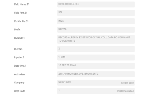 A sample screenshot of TX.TXN.BASE.PARMS record for OC.VAL.COLL.DATA is shown in the below screenshots.