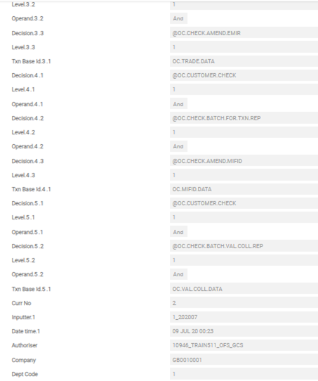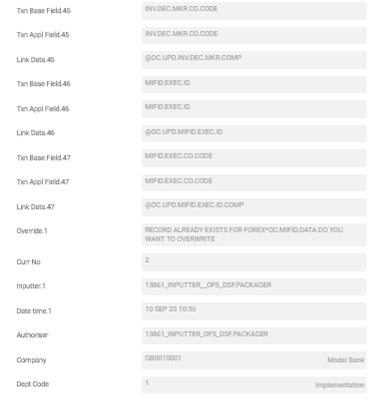 - The TX.CONDITION record has conditions to update OC.MIFID.DATA, OC.TRADE.DATA and OC.VAL.COLL.DATA.