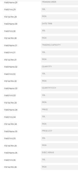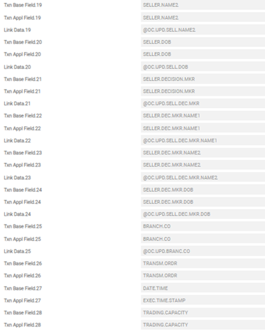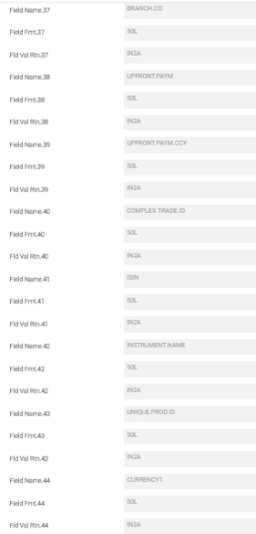 The user can remove the existing set of OC.TRADE.DATA and change it to the fields given in the below screenshot. This allows to generate the following reports to make the changes in OC.TRADE.DATA: