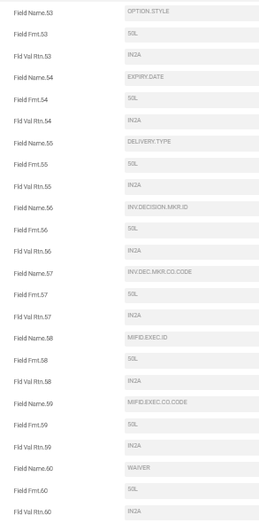 | OC.MIFID.DATA Field | NDF | FRA | SWAP | DX.TRADE | FOREX |