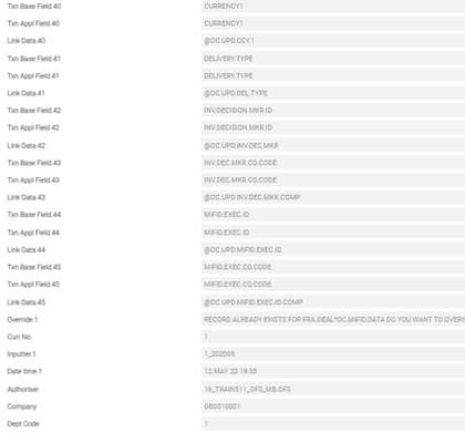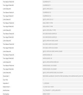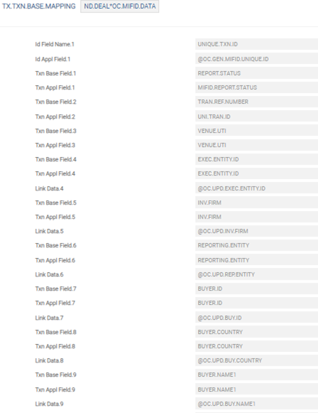 - Tran Ref Number field of OC.MIFID.DATA is mapped to Uni Tran ID field of ND.DEAL
