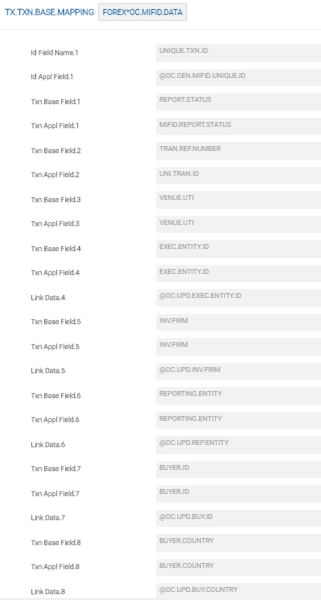 This application enables the user to map the fields. The ID of the record needs to be in the following format: APPLICATION*OC.MIFID.DATA.