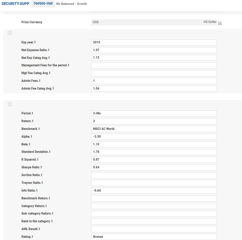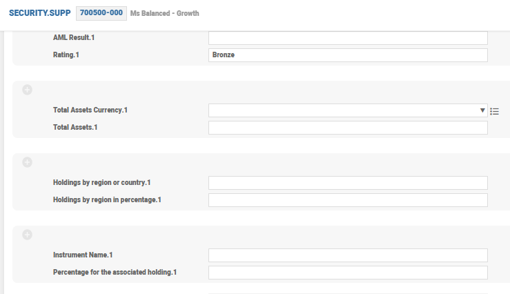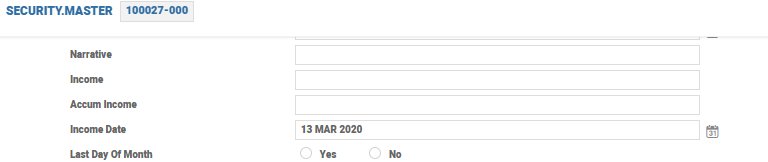The SECURITY.SUPP application is used to store additional information held in SECURITY.MASTER application. The following fields allow the users to capture performances, expenses and holdings details in the SECURITY.SUPP application.