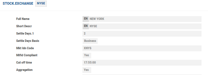 In global practice, many stock exchanges operate on different trading platforms. Therefore, each stock exchange is subject to have a primary trading venue and one or more secondary trading venues which are generally identified based on the Market Identification code (MIC). Each secondary trading venue is stored as a separate record in the STOCK.EXCHANGE application with respective MIC as their ID. All the secondary trading venue are linked to their primary stock exchange through the Primary Exchg field.