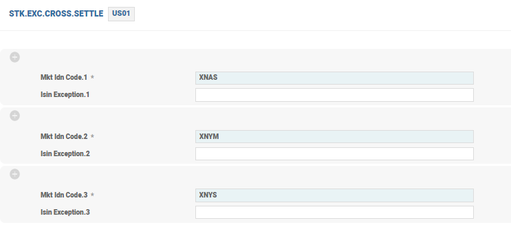 - If trade exchange details are available (stock exchange in the transaction), check whether the cross-settlement is allowed with the stock exchange of the SM (provided the trade exchange is not the same as exchange in SM). This includes the ISIN exception check.