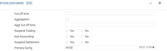 This application records the details of the stock exchange in which the security trades. The cut-off time for the stock exchange in the Cut off time field for the stock exchange.