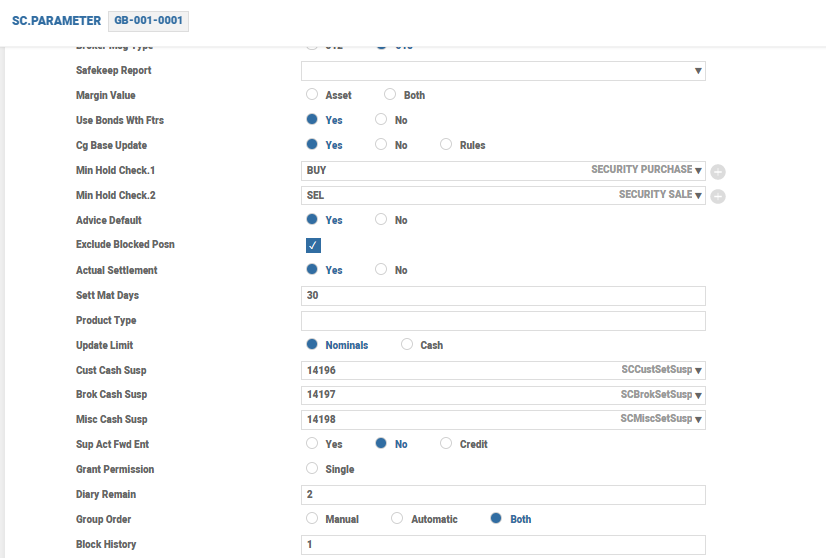 SECURITY.MASTER,SUB.ASSET.TYPE,ASSET.TYPEandSYSTEMis checked. The same sequence is followed, if a record withSECURITY.MASTERis found in the first instance then the grouping is based on the parameter record. - If no match is found then the