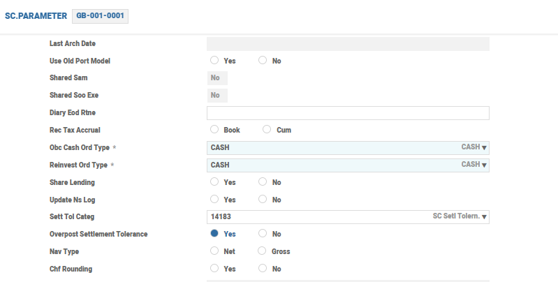 The record in SC.PARAMETER is the mandatory parameter record. This application contains the default values at company level that must be set up for the SC module to function properly. These default values apply irrespective of the application, transaction type or user. A record in SC.PARAMETER needs to be present for each company in the SC module. The user must be aware of the functionality of all the fields in this record to ensure its proper usage.