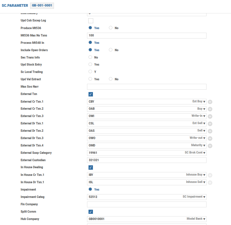 | Produce Mt536 | When set to Yes, the system supports generation of outbound MT536 messages |