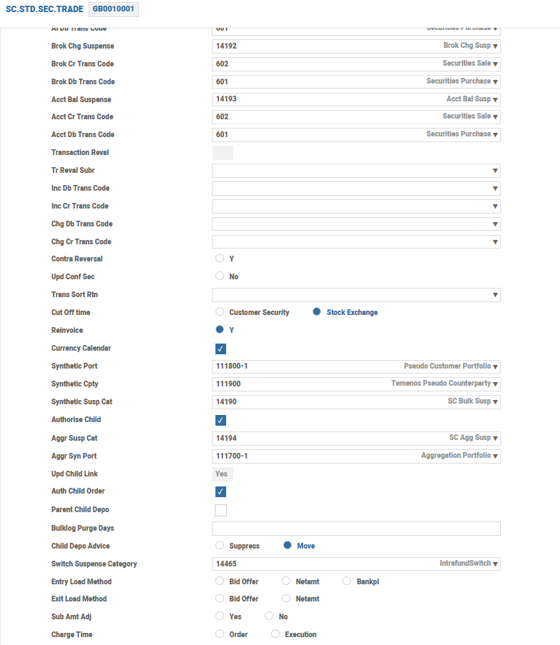 | Authorise Child | If set to Yes, the child trades are authorised on authorisation of the parent. Child trades are also automatically authorised, if the Authorise Trade field in SC.EXE.SEC.ORDERS of the parent is set to Yes. |