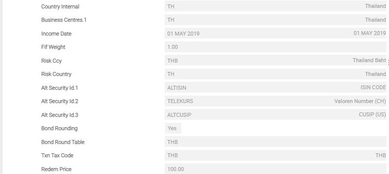 | Wht Tax Code | The Wht Tax Code defaults from the Share Tax or Bond Tax field from TXN.TAX.CODE, if the security code is share or bond, respectively. |