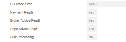 | Stamp Indicator | Defaults from SC.SETT.INSTRUCT based on the transaction code of broker, but can be manually overridden. The value must be in AAAA/BBBB or BBBB format. The value is mapped to 22F Tag and the Stamp Duty indicator in sequence E of MT54X(X = 0 to 3). This is a free format field and validation is not done. |
