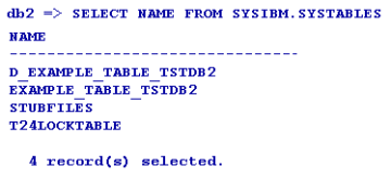 The above command generates the following tables in the DB2 RBDMS database.