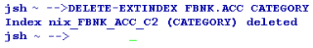 The following screen capture displays the extindex for the table in the default database.