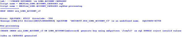 The following screen capture shows an example of index creation on a long tag xml table. It is similar to creating indexes for normal files.