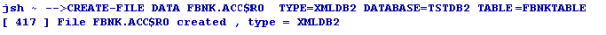 You can use the CREATE-FILE command with a type qualifier (TYPE) to define the file to be created as a table in the DB2 RBDMS database. For example, TYPE=XMLDB2.