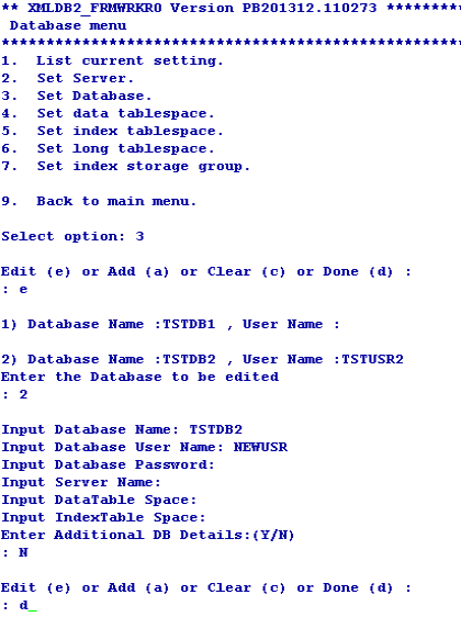 You can configure the user credentials of the first (default) database using the Set DB login user name and Set DB login password options in User menu. If you do not configure the user credentials for other databases, the user credentials of the first database is made available for all the databases.