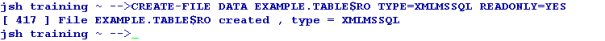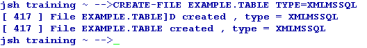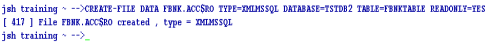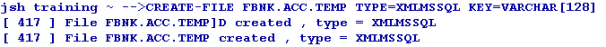 You can use the CREATE-FILE command with a type qualifier (TYPE) to define the file to be created as a table in the MSSQL server database. For example, TYPE=XMLMSSQL.