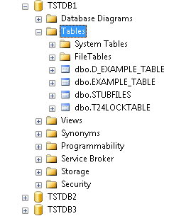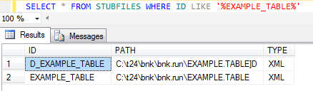 For each table a cross reference entry is created in the STUBFILES table with the MSSQL server RDBMS database. In addition, a native file stub is also created for each table in the specified file path (in the above example, it is the current directory). The stub files are used to locate and invoke the correct driver for the corresponding table.