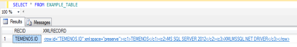 If the XMLRECORD is of XML type, the data will be converted from the internal dynamic array format into an XML sequence for insertion into the MSSQL server database. If the record is of BLOB type, the data will be stored directly in the XMLRECORD column in binary format.