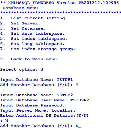 You can configure the user credentials of the first (default) database using the Set DB login user name and Set DB login password options in User menu. If you do not configure the user credentials for other databases, the user credentials of the first database is made available for all the databases.
