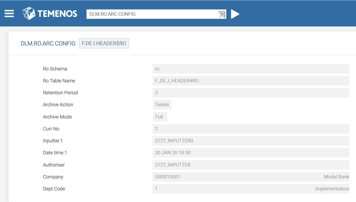 The DLM.RO.ARC.CONFIG application enables you to configure the tables required for RO to ARC movement. This application accepts a valid $RO VOC record.