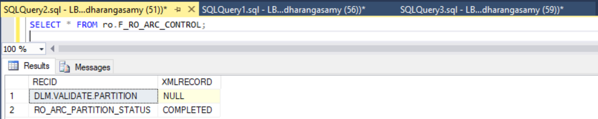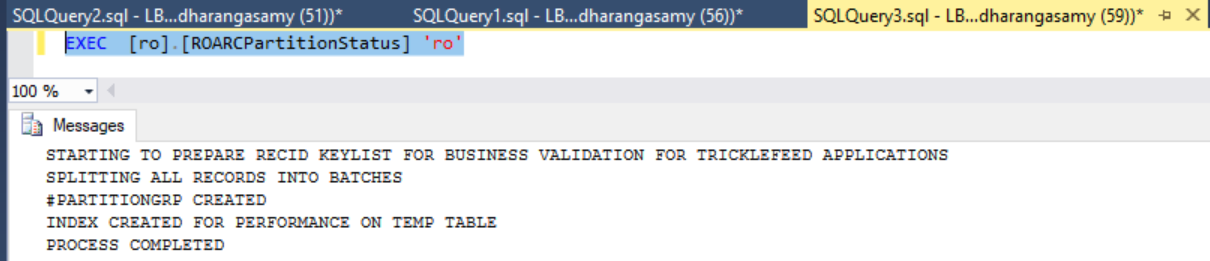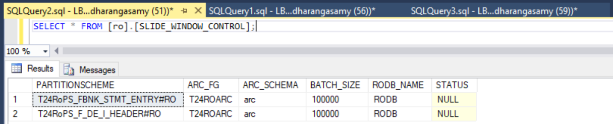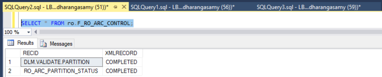 Finally, you need to execute the stored procedure by passing the @ROTableSchema parameter, which indicates the schema name of the RO table (if known). The control table should be updated as COMPLETED after successful completion of the status procedure.