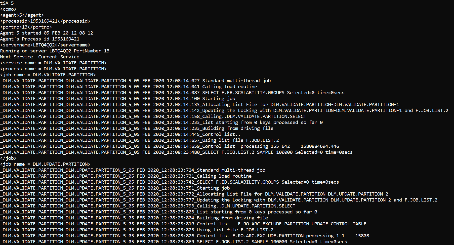 The DLM.VALIDATE.PARTITION service validates the records in F_RO_ARC_KEYLIST and decides whether the partition is eligible for movement. The eligible records in RO.ARC.PARTITION.STATUS are marked as ARCHIVAL.IDENTIFIED and ARCHIVAL.STATUS is set to Y. The RO.ARC.CONTROL table status is set to COMPLETED.