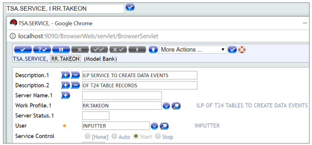 In the RR.TAKEON service record, set the SERVICE.CONTROL field to Start.
